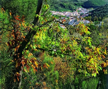 Ruta por el Parque Natural de la Sierra de Aracena y Picos de Aroche, entre los pueblos de Jabugo y Aracena, en el cogollo del Ibérico, durante el trayecto pasaremos por los pueblos de Robledo del Castaño, Alájar, y Linares de la Sierra, con una curiosa plaza de toros, la ruta discurre por parajes espectaculares, llena de impresionantes robles y castaños.